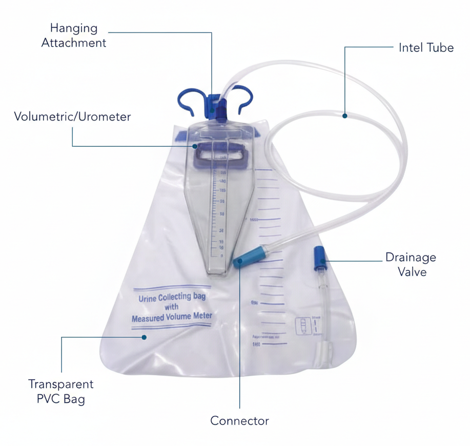 Urometer is designed for accurate hourly urine output measurement, making it ideal for critical care and post operative monitoring. The device features a clear, transparent graduated chamber that enables precise volume readings. It is directly connected to a 2 liter urine collection bag with an integrated overflow facility, ensuring uninterrupted urine drainage.
